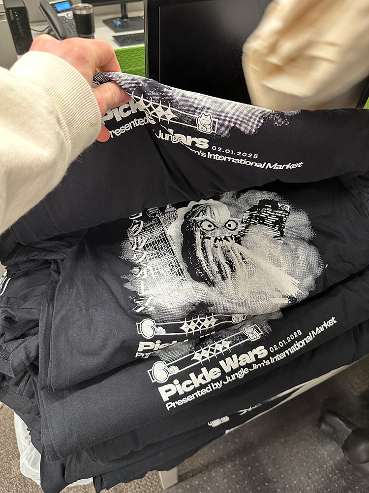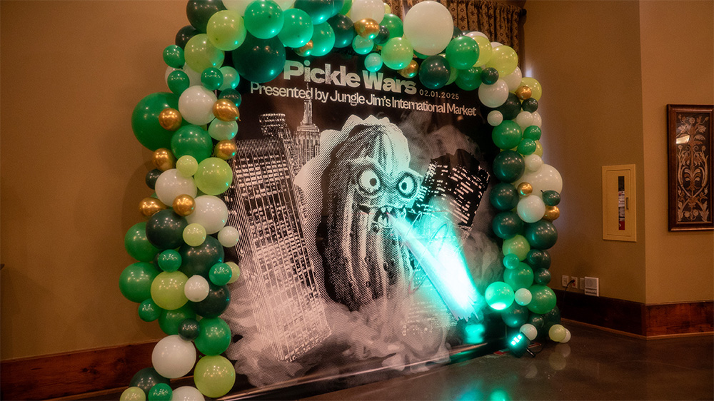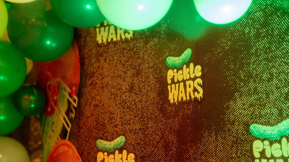 A large bit of my work at Jungle Jim’s has consisted of festival promotion and design – but it wasn’t until the then brand new festival, Pickle Wars, was tossed on my lap that I was able to explore creating an experiential system that was both accessible to vistors while having overall goofy and lighthearted atmostphere.